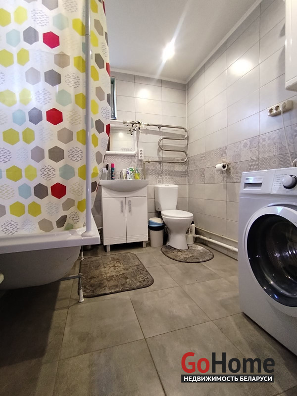 Просторная кухня: 11,2 м². Санузел совмещенный, облицован плиткой.
