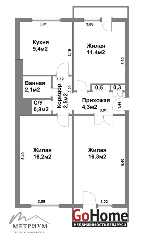 Квартира с видом на две стороны, два балкона, раздельный санузел. На этаже три квартиры.