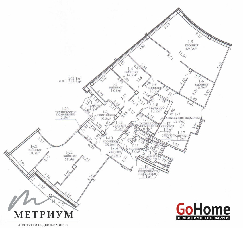 Общая площадь пространства 346,6 кв.м. на 1 этаже и наличие своего отдельного входа!!! С возможностью грамотного зонирования, в сочетании Open Space и отдельных кабинетов.Индивидуальная группа раздельных сан узлов.
