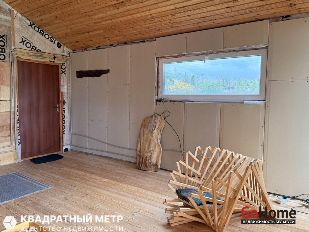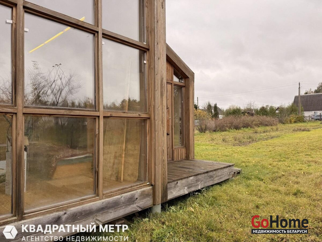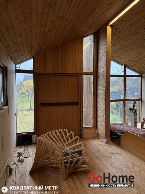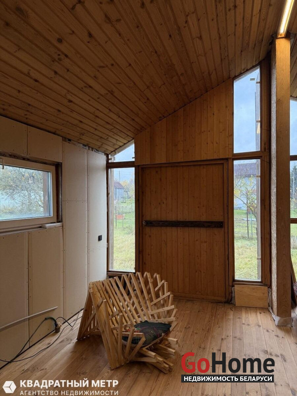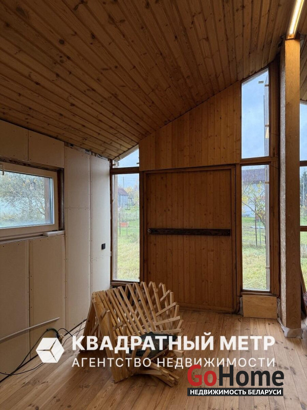 Общая площадь 44 м2, внутри отдельное помещение под сан.узел 4.0 м2. Установлен печь-камин, бойлер ElectroLux, насос для воды. Разведены коммуникации по дому, необходимо завершить и сделать внутреннюю отделку. 2-ой дом -студия, деревянный 2016 года постройки, общая площадь 35 М2, фундамент бетон, крыша еврошифер, полы - ДВП, окна-деревянные. Можно использовать для проживания, либо хранения хоз.инвентаря.