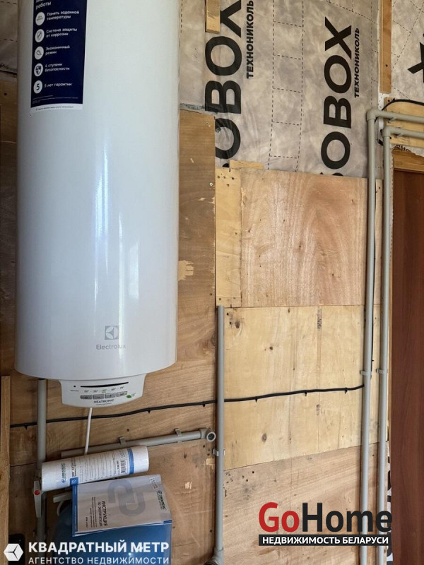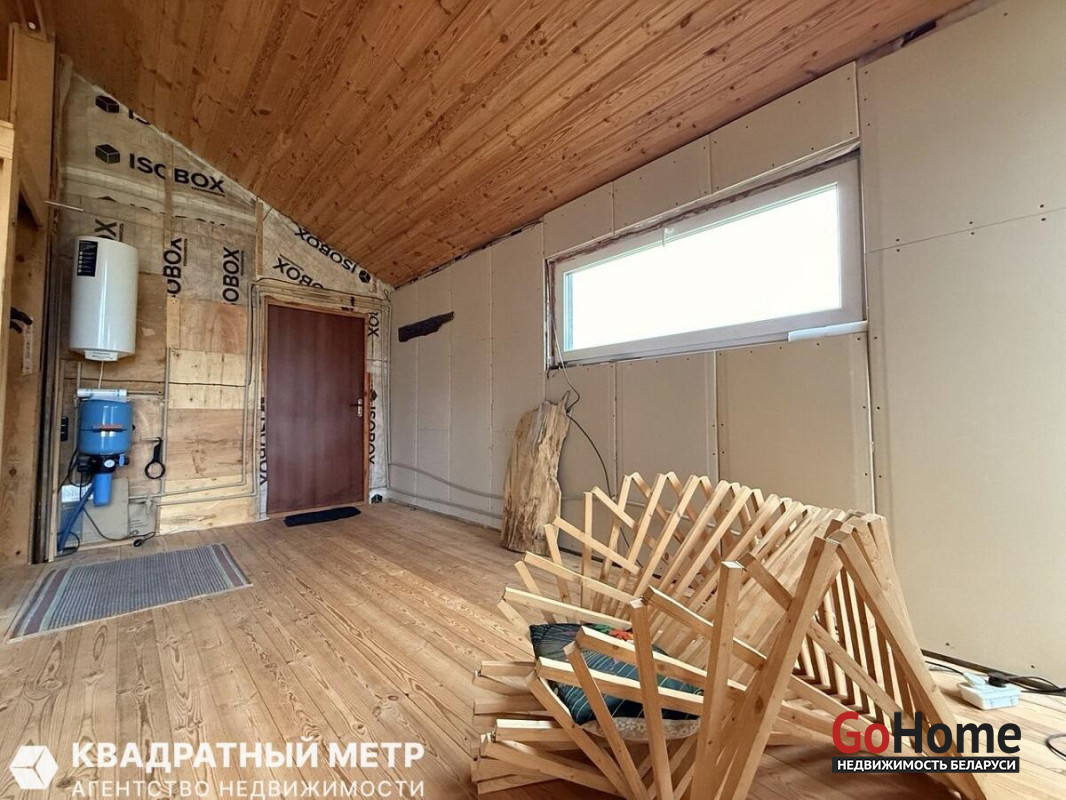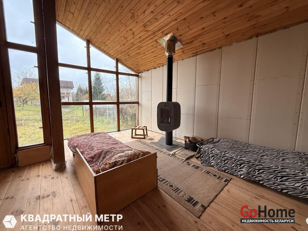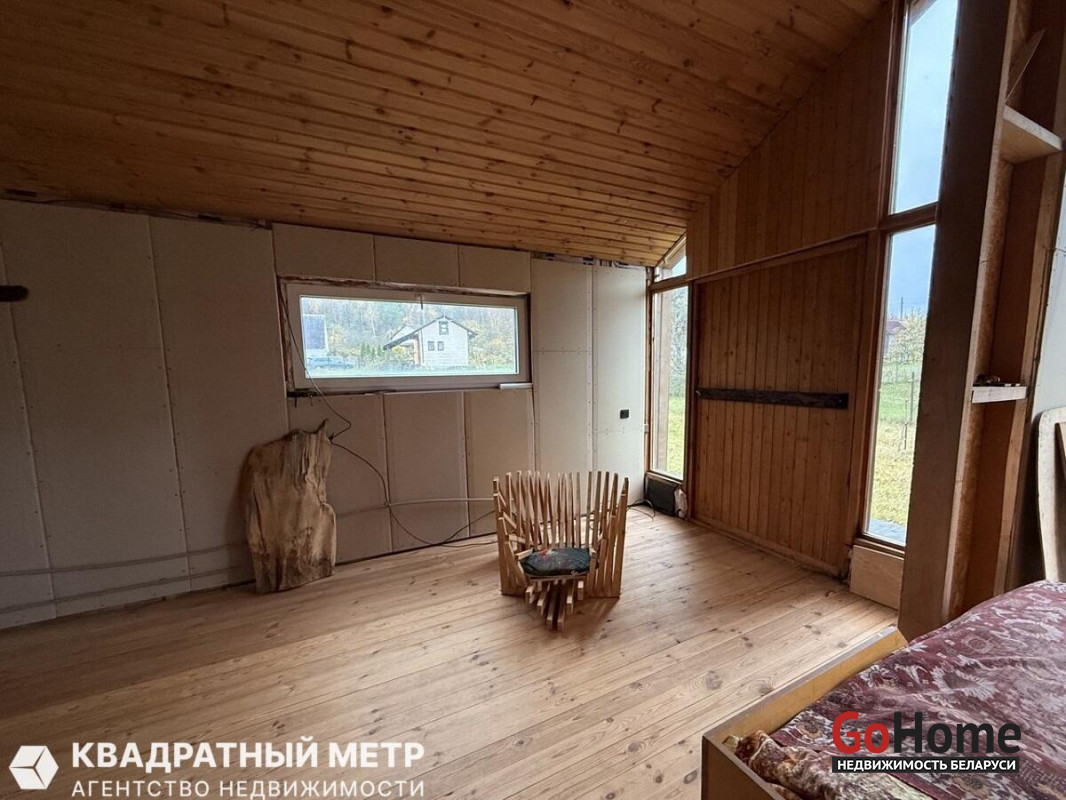 Общая площадь 44 м2, внутри отдельное помещение под сан.узел 4.0 м2. Установлен печь-камин, бойлер ElectroLux, насос для воды. Разведены коммуникации по дому, необходимо завершить и сделать внутреннюю отделку. 2-ой дом -студия, деревянный 2016 года постройки, общая площадь 35 М2, фундамент бетон, крыша еврошифер, полы - ДВП, окна-деревянные. Можно использовать для проживания, либо хранения хоз.инвентаря.