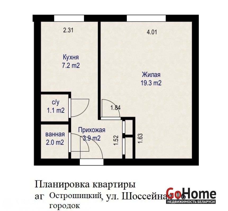 В квартире – просторная большая комната 19.2кв.м., большая кухня, везде окна ПВХ, пол коридора и кухни выложены плиткой декоративной, в комнате из дерева.