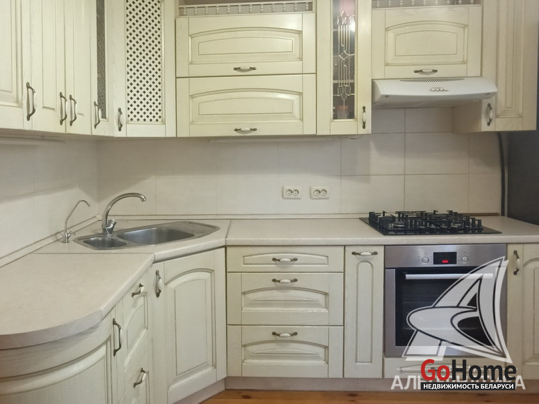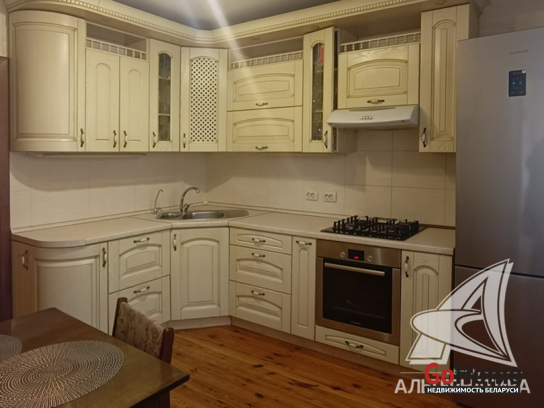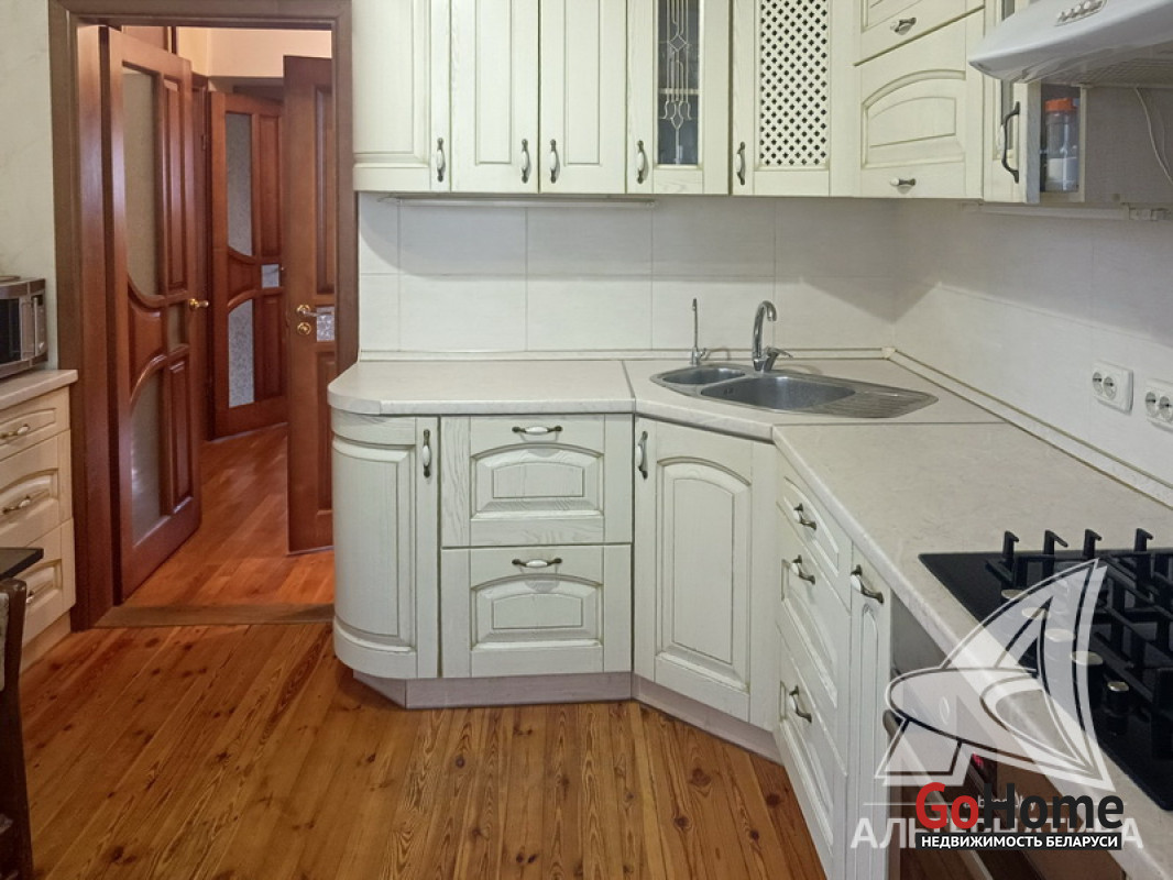 3-комнатная квартира, г. Брест, ул. Октябрьская, 1993 г.п., 1 / 5 кирпич, 69,3 / 64,0 / 37,2 / 9,9, санузел раздельный, две лоджии застеклены, подвал, погреб (под лоджией), стеклопакеты, межкомнатные двери - массив, входная дверь двойная - металлическая и деревянная (массив), потолки (2,52 м) - снежка, полы (положены на стяжку) - доска под лак (в кухне) и паркет (дуб), стены - оклеены обоями, в санузле современная плитка, домофон. Угловой кухонный гарнитур (массив), газовая варочная поверхность, духовой шкаф, вытяжка. Квартира с хорошим ремонтом. Высокий цоколь. Дом расположен в глубине двора. Лот - 251974