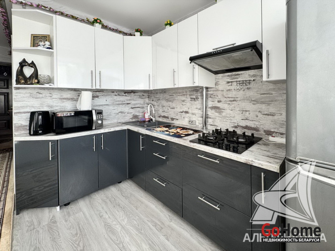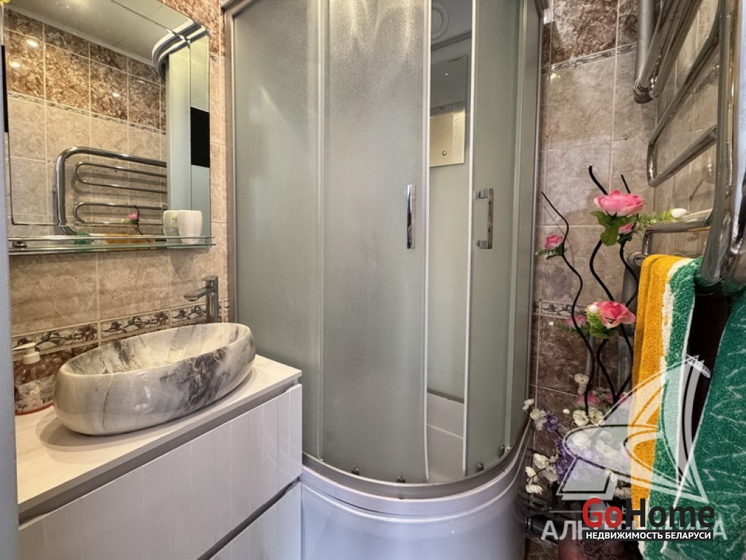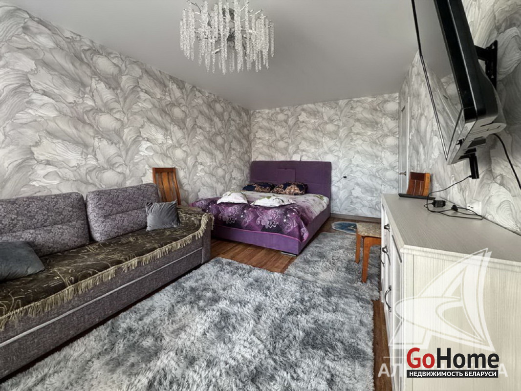 1-комнатная квартира, г. Брест, ул. Высокая, 1986 г.п., 1 / 5 панель, 38,9 / 36,8 / 16,8 / 9,3, санузел раздельный, лоджия застеклена, стеклопакеты, межкомнатные двери - шпон, входная дверь пластиковая, натяжные потолки (2,6 м), полы (положены на стяжку) - ламинат, есть подогрев пола (на лоджии), стены - оклеены обоями, в санузле современная плитка, заменена сантехника, заменен полотенцесушитель, заменены сантехнические трубы, душевая кабина, телефон, домофон, видеодомофон (во дворе). Кухонный гарнитур, варочная поверхность, духовой шкаф, вытяжка, посудомоечная машина, стиральная машина, кровать, комод, шкаф-купе (в коридоре). Квартира с хорошим ремонтом. Тамбур на четыре квартиры. Все окна выходят во двор. Дом расположен в глубине двора. Лот - 251973