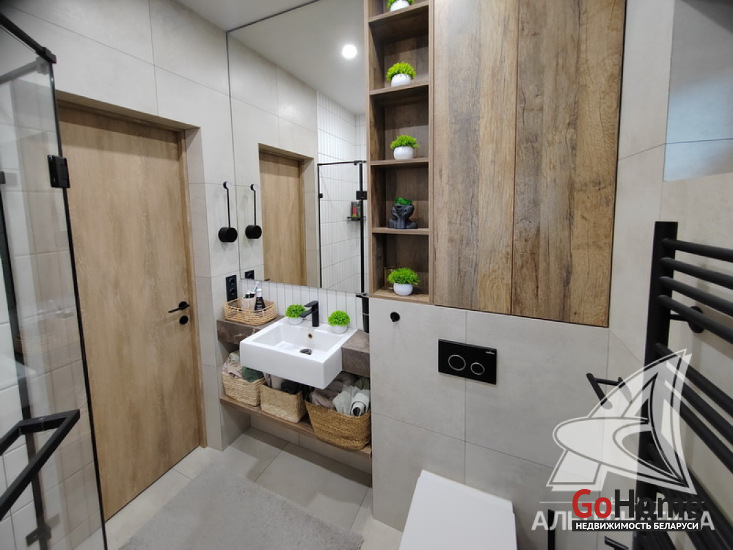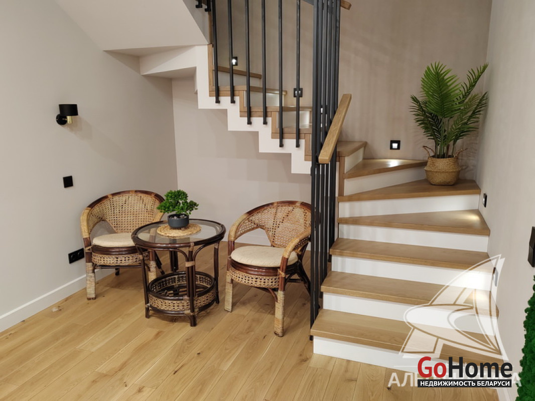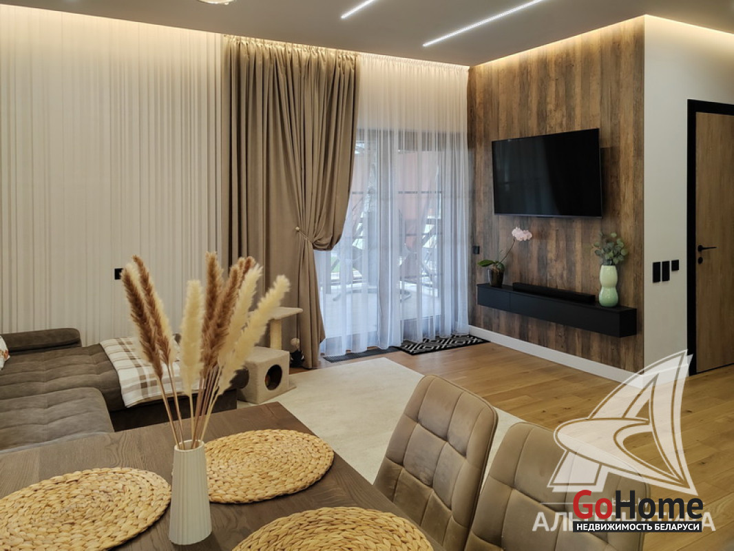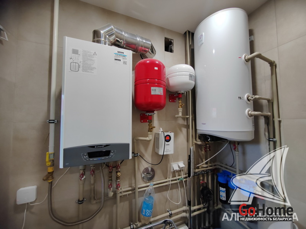 Коммуникации: отопление - газовый котел, газ - централизованный (в доме), водоснабжение - скважина и гидрофор, электричество - централизованное, канализация - автономная.