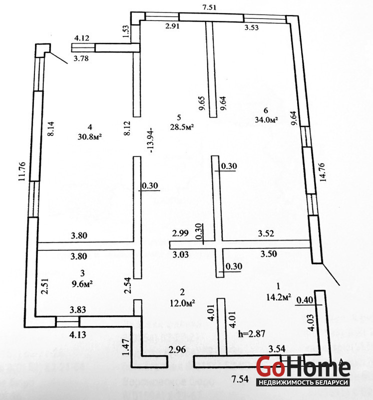 Общая площадь 129.0, жилая – 66.0, кухня – 14.2 м/кв, 3 комнаты.