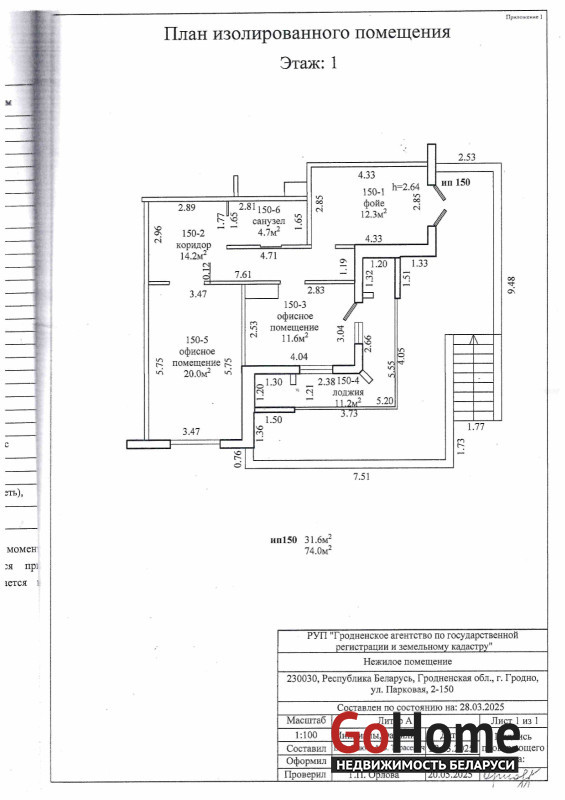Общая площадь – 74 м². Возможна перепланировка под нужды арендатора.