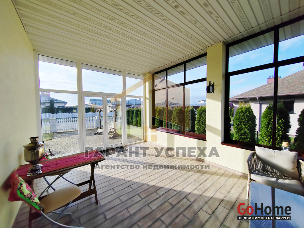 Общая площадь жилых помещений составляет 125,6 кв.м., жилая – 75,9 кв.м. В доме имеются три жилых комнаты, одна из которых просторная гостиная (32,4 кв.м) с действующим камином, и практически таких же размеров одна из спален. Помимо указанных помещений в доме есть большая кухня, два совмещённых санузла, две террасы, при этом одна полностью закрыта от непогоды, прихожая, тамбур и топочная. С тыльной стороны дома под террасой предусмотрен подвал площадью 20,3 кв.м.