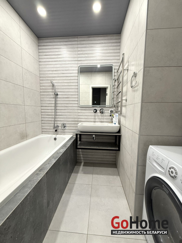 В спальне оборудована собственная душевая кабина, есть отдельная гардеробная с продуманной системой хранения. Санузел и ванная комната облицованы качественной плиткой, установлена современная сантехника и вместительная стиральная машина. Входная дверь оборудована электронным замком ― безопасность на высшем уровне.