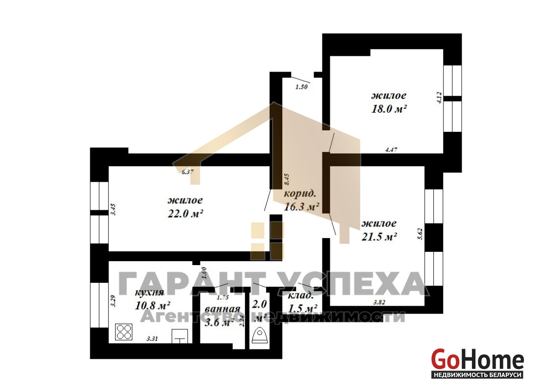 Квартира с уникальной планировка с просторными комнатами - 22/18/21.5 м2, где вы еще найдете такую квадратуру комнат? А высота потолков - это еще один огромный плюс - 3,41 м2. Эта квартира отличный вариант для воплощения всех Ваших дизайнерских идей.