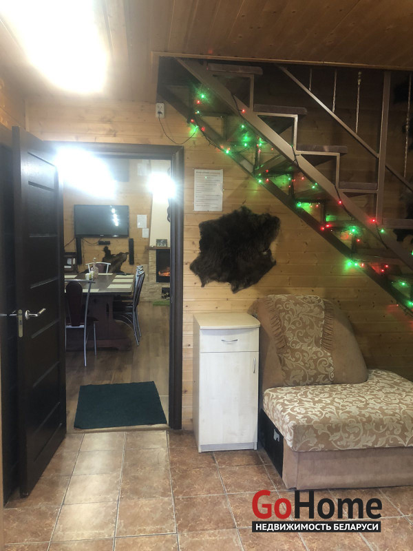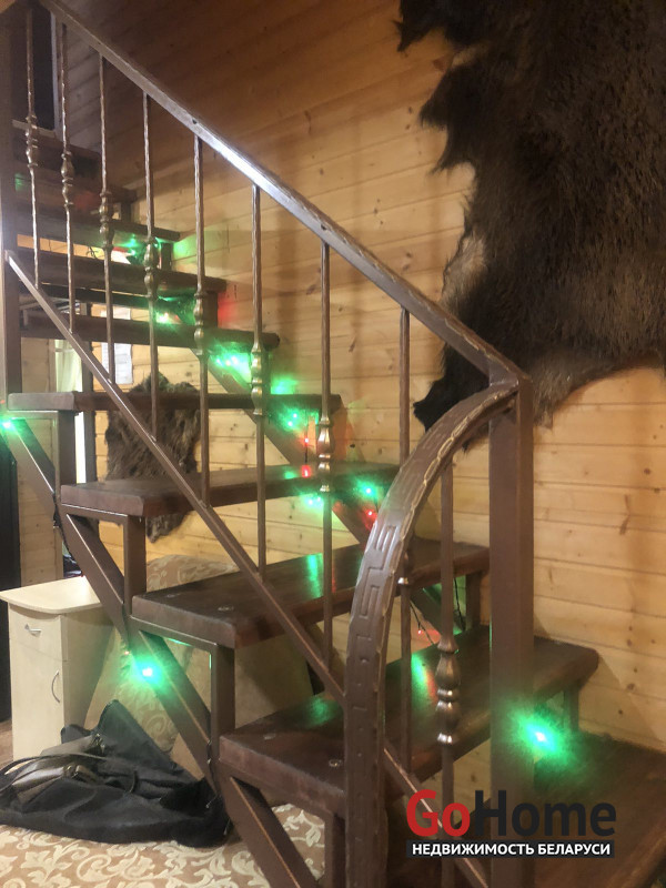 В гостевом доме со всеми удобствами комфортно можно разместить 10 человек. На 1-м этаже расположен зал с камином, оригинально оформленный трофеями диких животных, кухня, оснащённая всей необходимой бытовой техникой, санузел. На 2-м - 4 спальни (каждая на 2 человека) с санузлами.