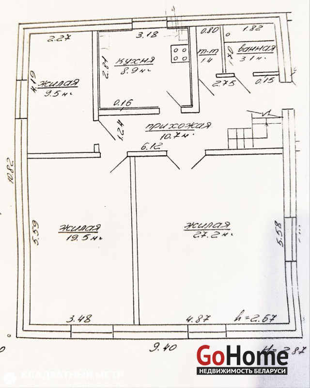 - 1 этаж (80.3м2): просторная гостиная (27.2м2), отдельная кухня (8.9м2), две спальни (9.5 и 19.5м2), прихожая (10.7м2) и раздельный санузел (3.1 и 1.4м2) с ванной.