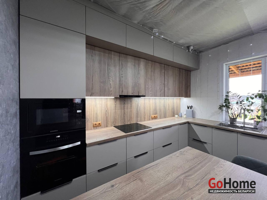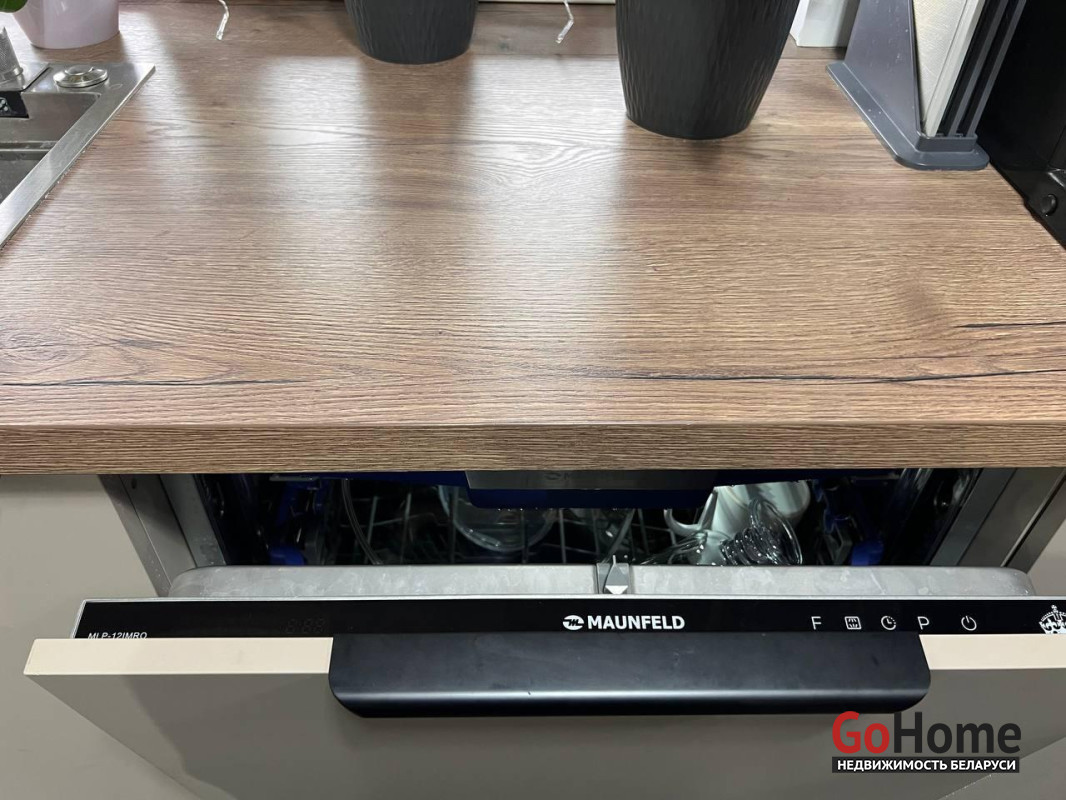 Кухня оборудована стильным гарнитуром с качественной фурнитурой и всей необходимой техникой, (индукционная варочная панель, духовой шкаф, встроенная микроволновая печь, посудомоечная машина, раковина со встроенным измельчителем, вытяжка, объемный двухкамерный холодильник). Установлена сплит система (кондиционер) для охлаждения и очистки воздуха в жару и подогрев в межотопительный период. Подключена система «умный дом с Алисой».