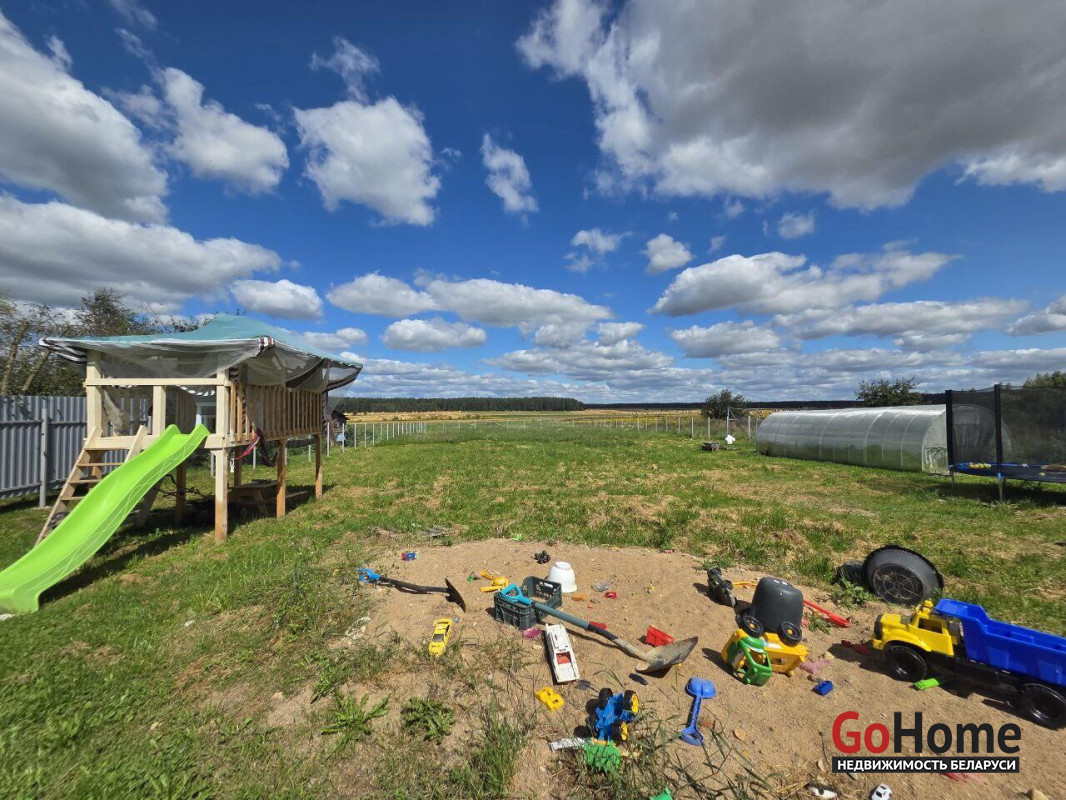 На участке установлено детское оборудование и имеется прекрасный парник из поликарбоната.