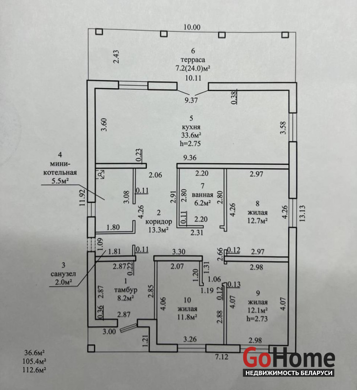 В доме большая кухня-гостиная, с выходом на террасу, дополнительно 3 отдельных просторных комнаты, два санузла (гостевой и хозяйский), мини-котельная, прихожая с просторным вестибюлем, теплый тамбур.