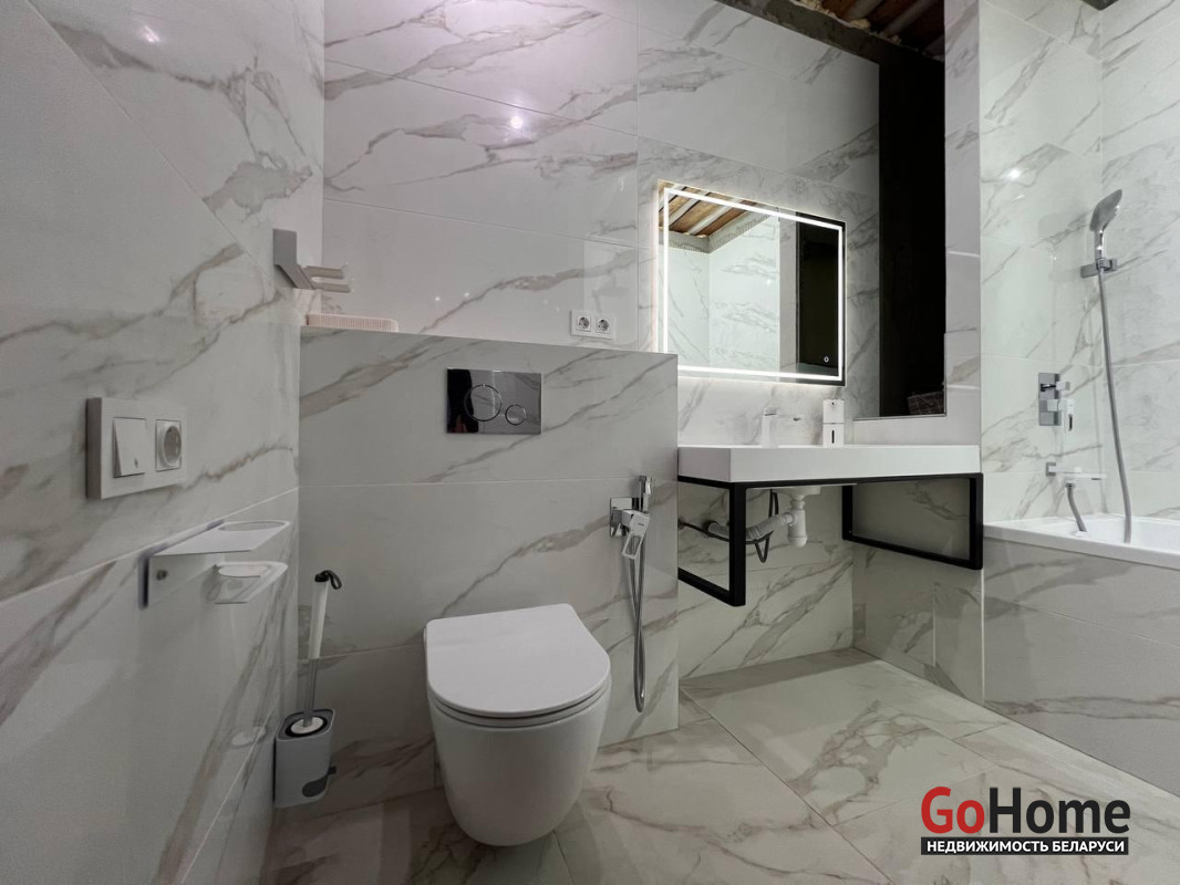Хозяйский санузел оборудован отдельной ванной, безбарьерной душевой зоной с лейкой тропического ливня, унитазом с инсталляцией и псевдо биде, умывальником.