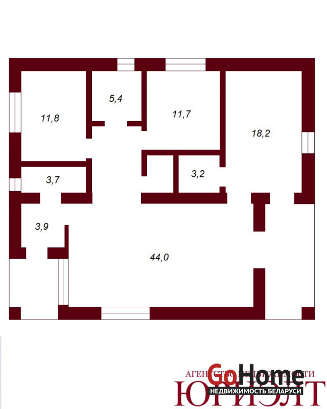 Дом общей площадью 120 м2 с улучшенной планировкой: большая кухня-гостиная 44 м2, мастер-спальня 18,2 м2 со своим санузлом и возможностью установки вместительной системы хранения, две отдельные спальни почти по 12 м2, ещё один санузел, гардеробная и топочная. Также предусмотрена уютная терраса почти 10 м2.