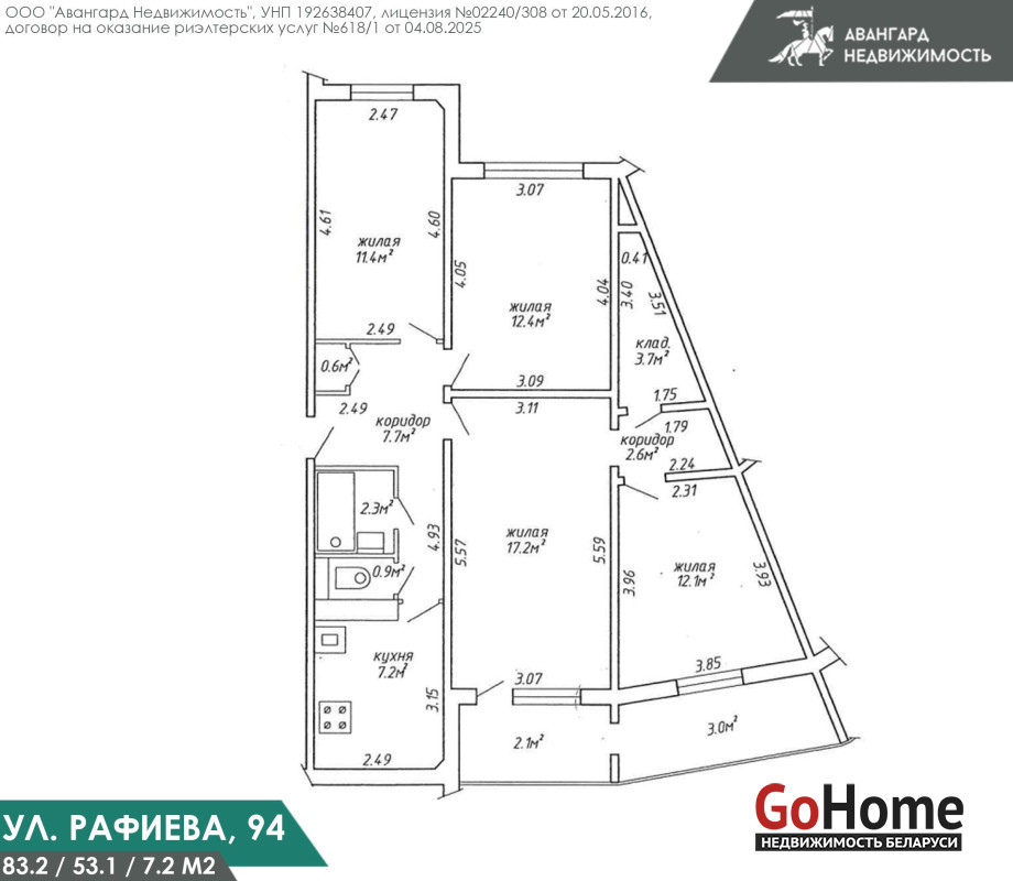 Четырёхкомнатная квартира в р-не с развитой инфраструктуройАдрес: г. Минск, ул. Рафиева, д. 94.- Продаётся уютная и просторная четырёхкомнатная квартира - отличный выбор для тех, кто ценит комфорт и уютное жильё в тихом и зелёном районе.- Квартира расположена на 2-ом этаже с приятным видом из окна.- Общая площадь по СНБ составляет 83,2кв.м, с 3-мя раздельными жилыми комнатами: 14,0 кв.м., 12,4 кв.м., 12,1 кв.м. и проходной комнатой 17,2 кв.м.- Предусмотрена просторная кладовая комната.