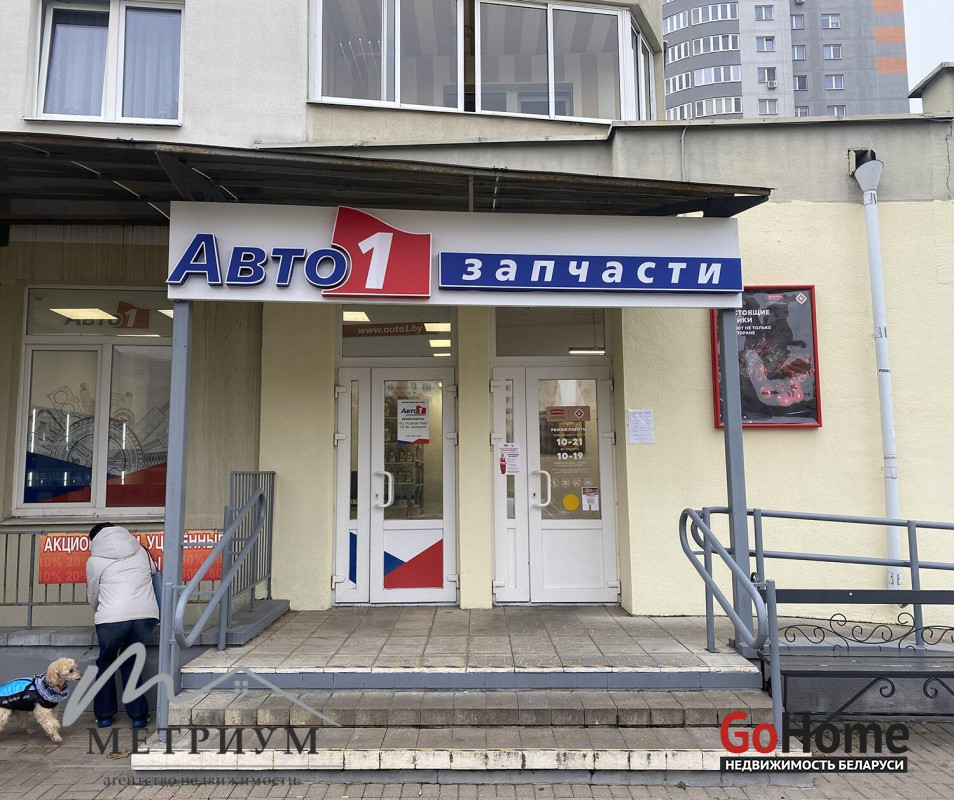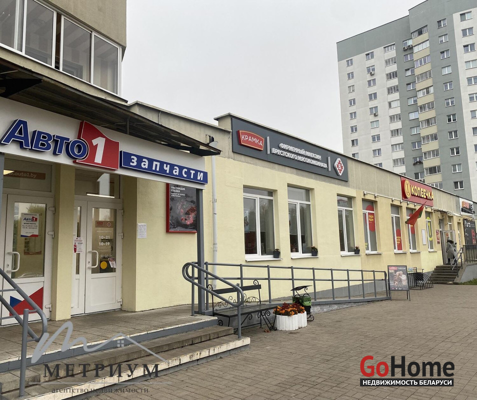 Помещение находится на первом этаже многоэтажного дома в жилом районе на перекрестке ул. Алибегова и ул. Янки Брыля. Помещение в линейке стрит-ритейла рядом с «Копеечкой», магазином запчастей, мясным магазином, кофейней и другими объектами торговли. За зданием оборудована парковка. В 100 метрах от входа располагаются остановки общественного транспорта с высоким пассажиропотоком (19 регулярных маршрутов).