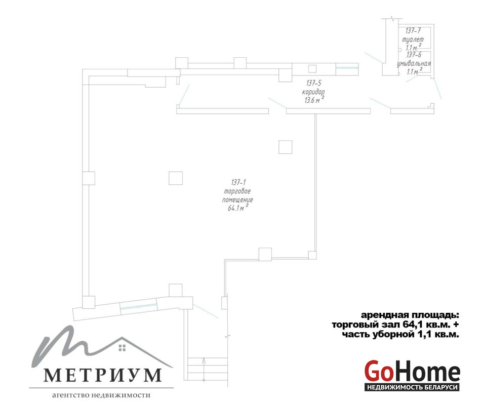 Выход через общий тамбур, возможность размещения рекламы на фасаде здания, витринные окна и зона для загрузки/выгрузки товара. Выполнен функциональный ремонт в светлых тонах (потолок ARMSTRONG, на полу керамическая плитка), большие окна с естественным освещением.