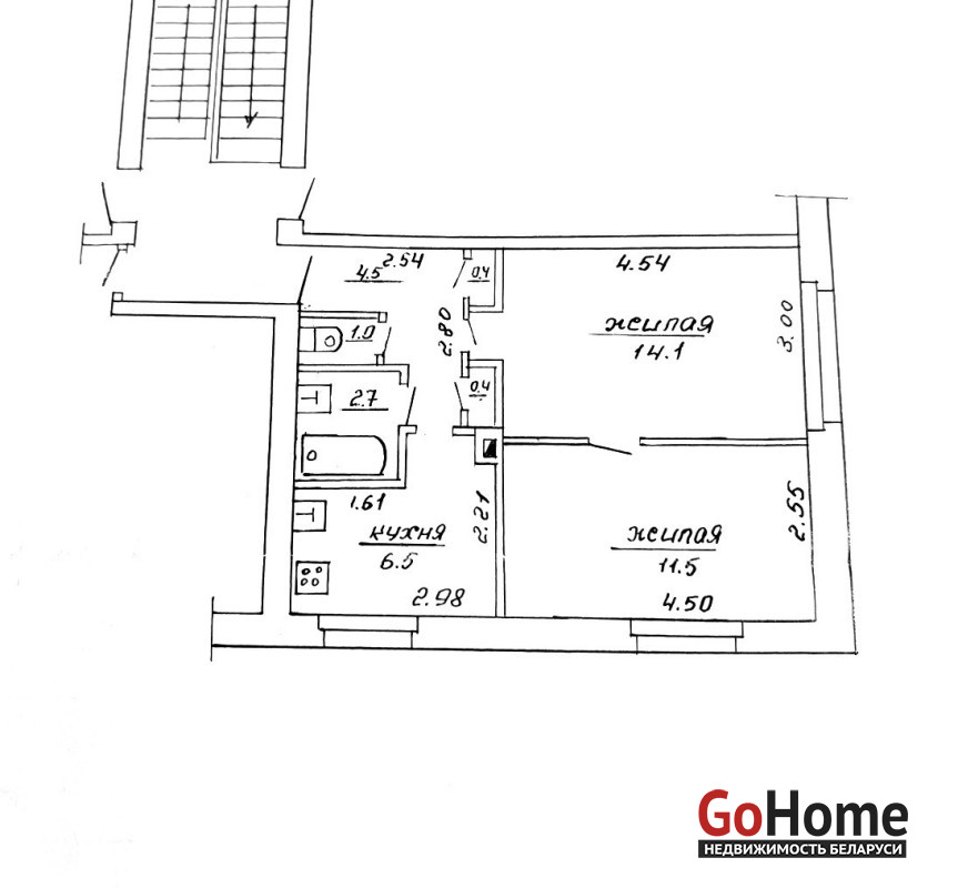 Общая площадь 41.1 м.кв., жилая 25.6 м.кв, кухня 6.5 м.кв. Высота потолка 2.5 м. С/у совмещенный.