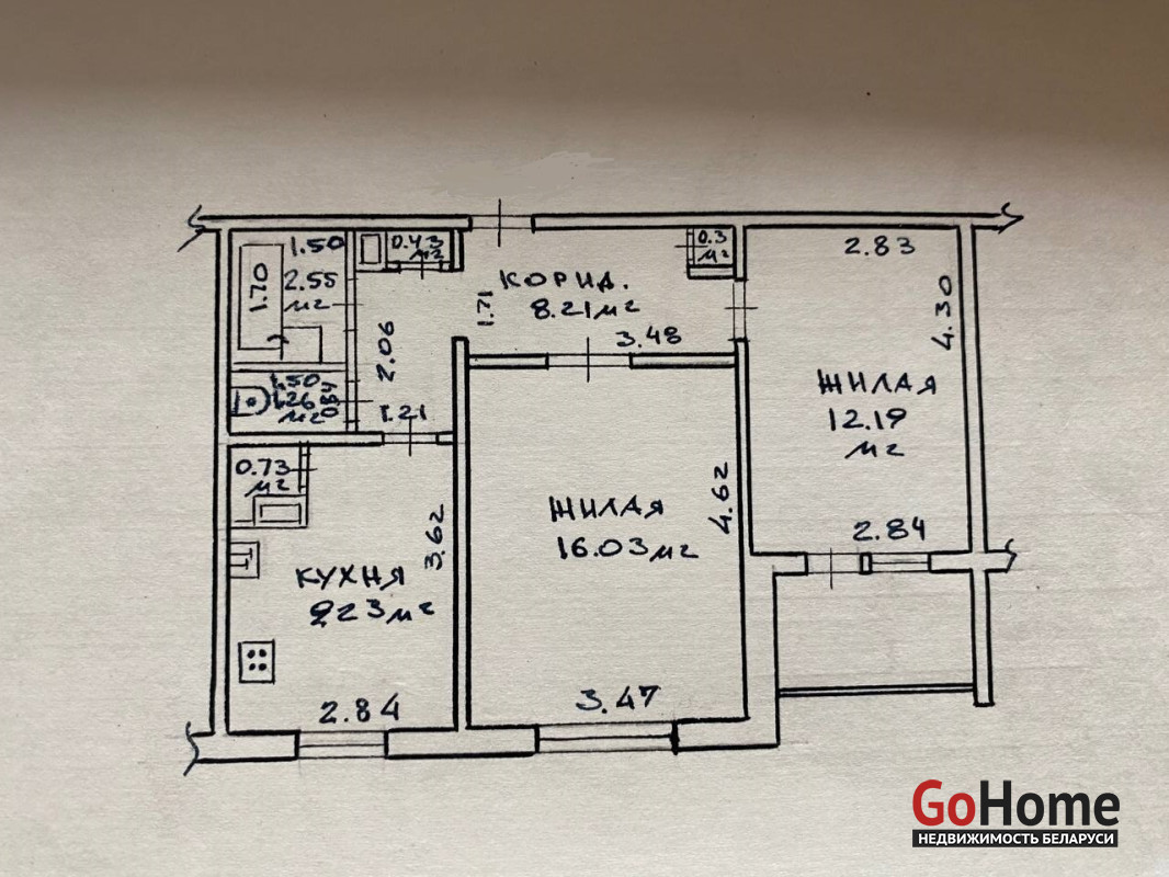 Комнаты изолированные площадью 16,03 и 12,19 кв.м. Лоджия застеклена и отделана. Окна ПВХ и деревянные. На полу ламинат, ДСП и плитка. Квартира не угловая. Установлены приборы учёта воды и электричества, интернет, домофон.