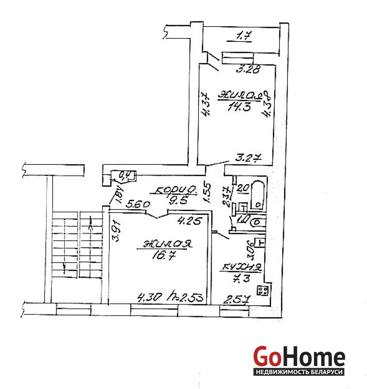 Расположена в тёплом кирпичном доме 1981 года постройки. Общая площадь 51.2 м2, жилая - 31м2, кухня - 7.3м2. Квартира расположена на втором этаже из пяти. Окна выходят на две стороны.