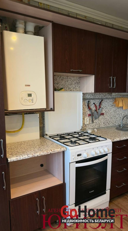 * На кухне встроенная мебель с бытовой техникой и газовым котлом на отопление и подогрев воды;
