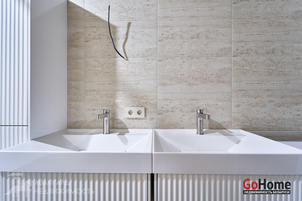 - В квартире выполнены основные ремонтные работы. На полу в жилых комнатах и коридоре уложен качественный ламинат, в мокрых зонах - плитка. Стены выровнены и окрашены, потолок подготовлен под монтаж натяжных потолков. Новая и продуманная электрика, предусмотрено много розеток и зон освещения (проект в комплекте). Разведена и установлена основная сантехника: сделаны выводы под умывальники, стиральную и сушильную машину, посудомоечную машину, установлена хорошая акриловая ванна.