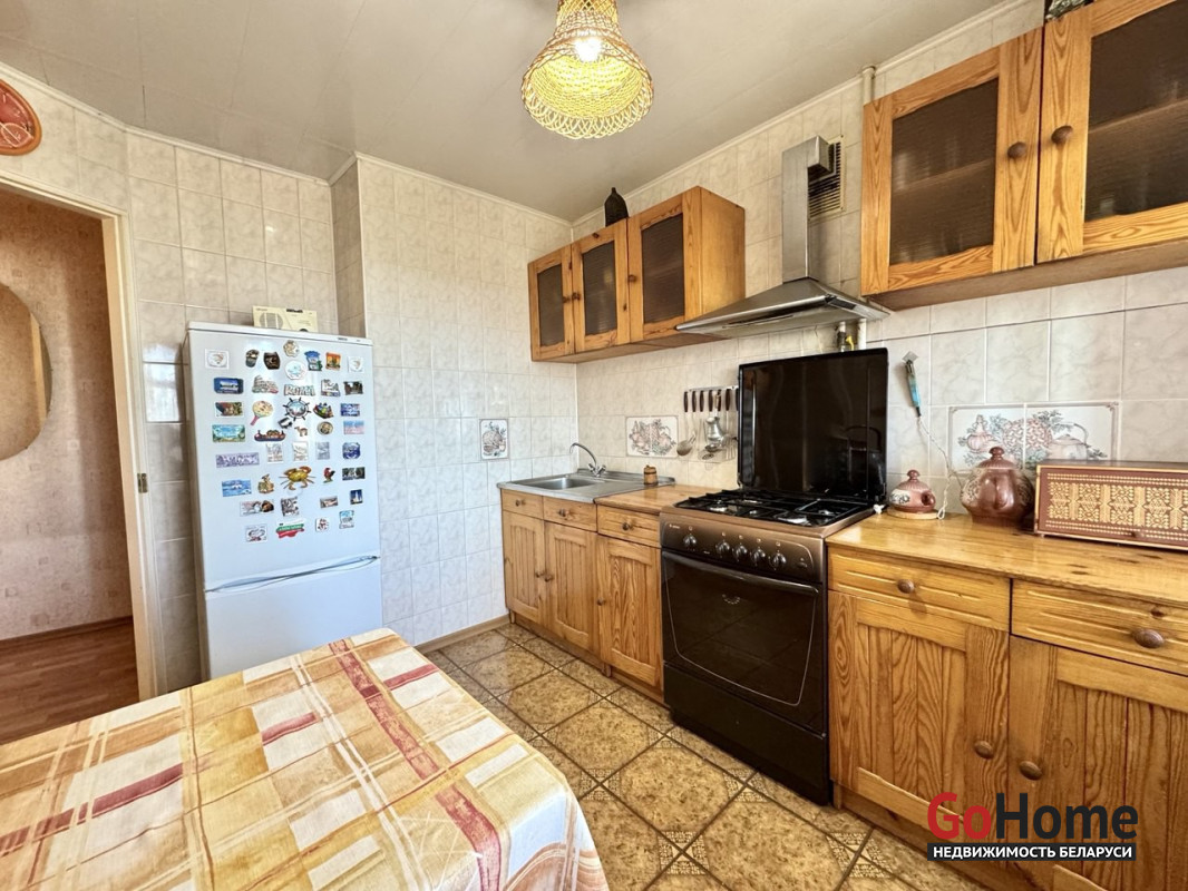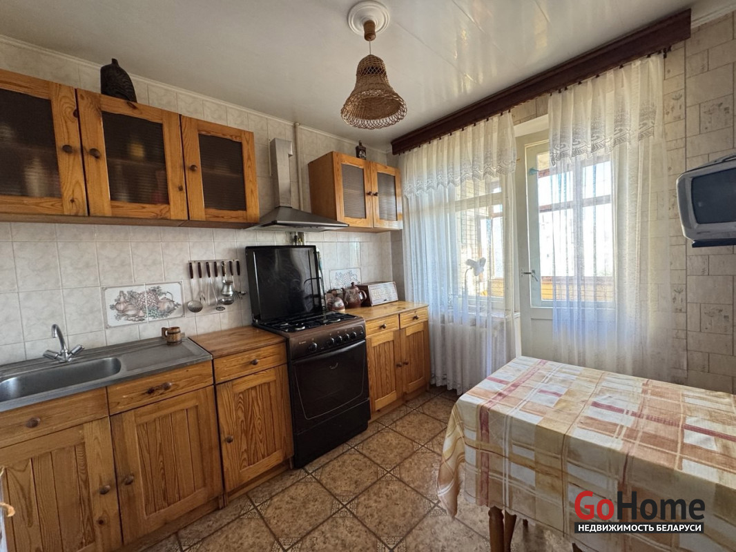 Входная дверь-двойная деревянная, полы - линолеум, дсп. Кухня (8 м2) укомплектована кухонным гарнитуром, газовой плитой и холодильником, имеется выход на просторную лоджию, где можно любоваться прекрасными восходами солнца.
