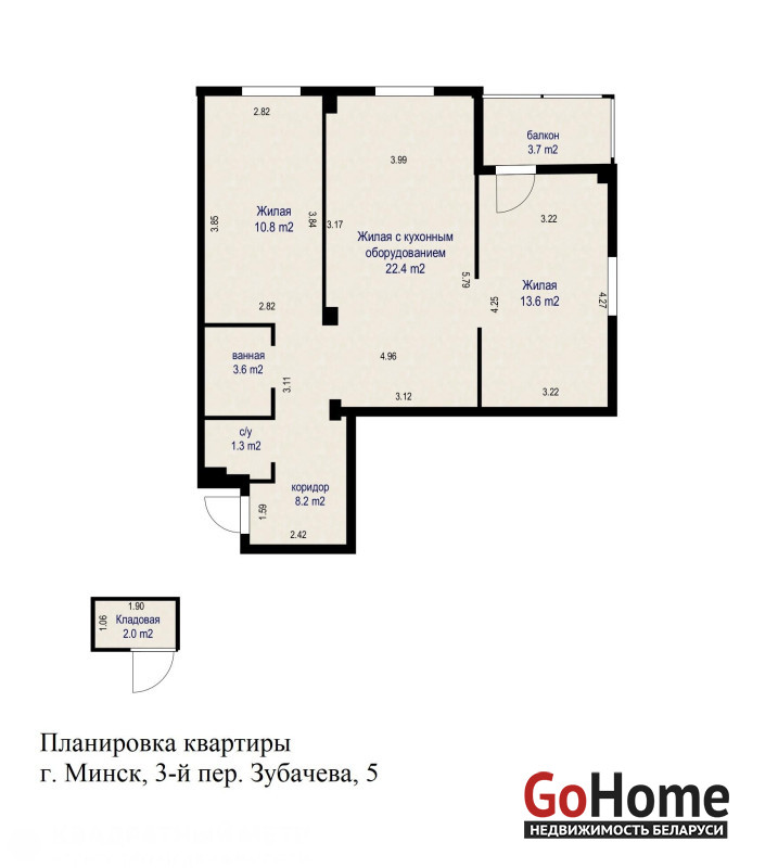 Две уютные изолированные комнаты площадью 13,6м.кв и 10,8 м.кв -тишина и личное пространство для каждого.