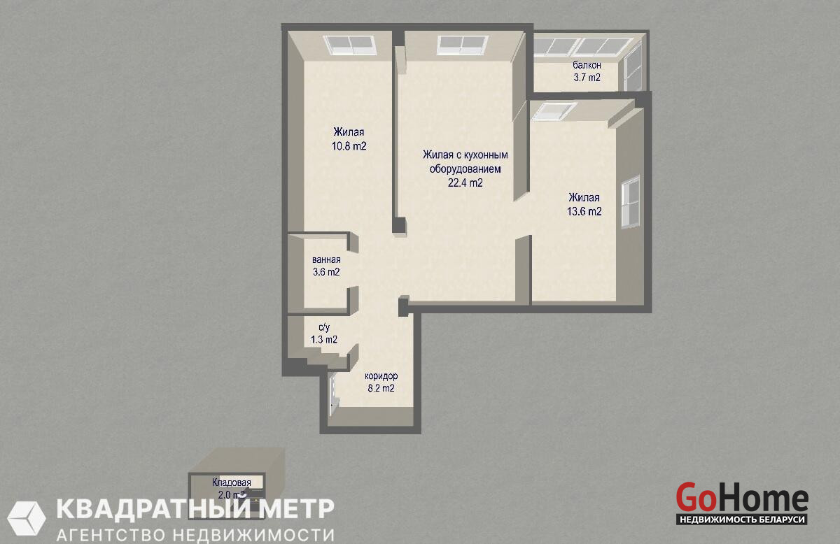 Продается шикарная 3-комнатная квартира на 4-ом этаже 10-ти этажного, каркасно-блочного дома. Год постройки 2019, общая площадь 61.8 кв.м. по СНБ.С красивейшим видом из окна. Бонус - Кладовая комната на цокольном этаже.