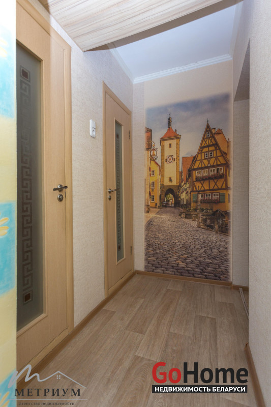 Чистый подъезд и доброжелательные соседи. Дом после капитального ремонта: фасад утеплен термошубой, в подъезде покрашены стены и установлены новые двери, два новых лифта. Развита инфраструктура микрорайона, удобное расположение рядом с остановками общественного транспорта. В шаговой доступности есть все, что необходимо для комфортного проживания: детские сады, школы, магазины, Московский рынок, банки, почтовые отделения, бассейн, ТЦ «Титан», «Гиппо», «Санта», круглосуточный магазин «Евроопт». Буквально в двух минутах ходьбы находится Яблоневый сад, фитнес центр М.Мирного.