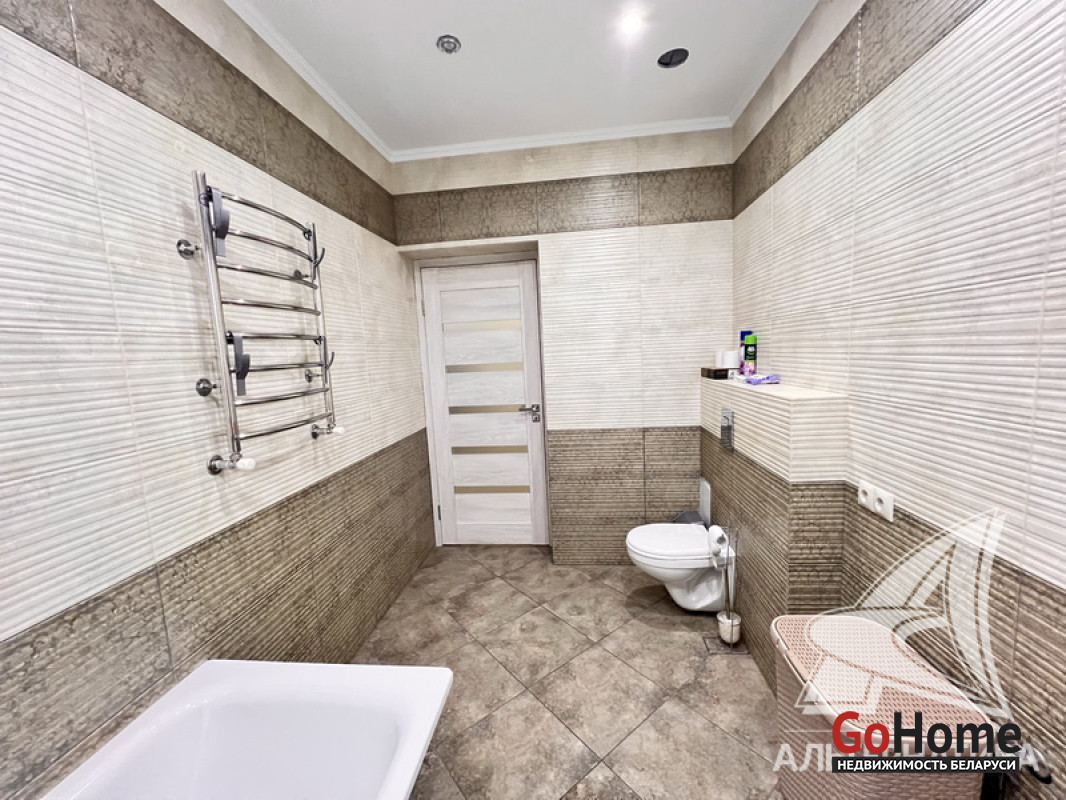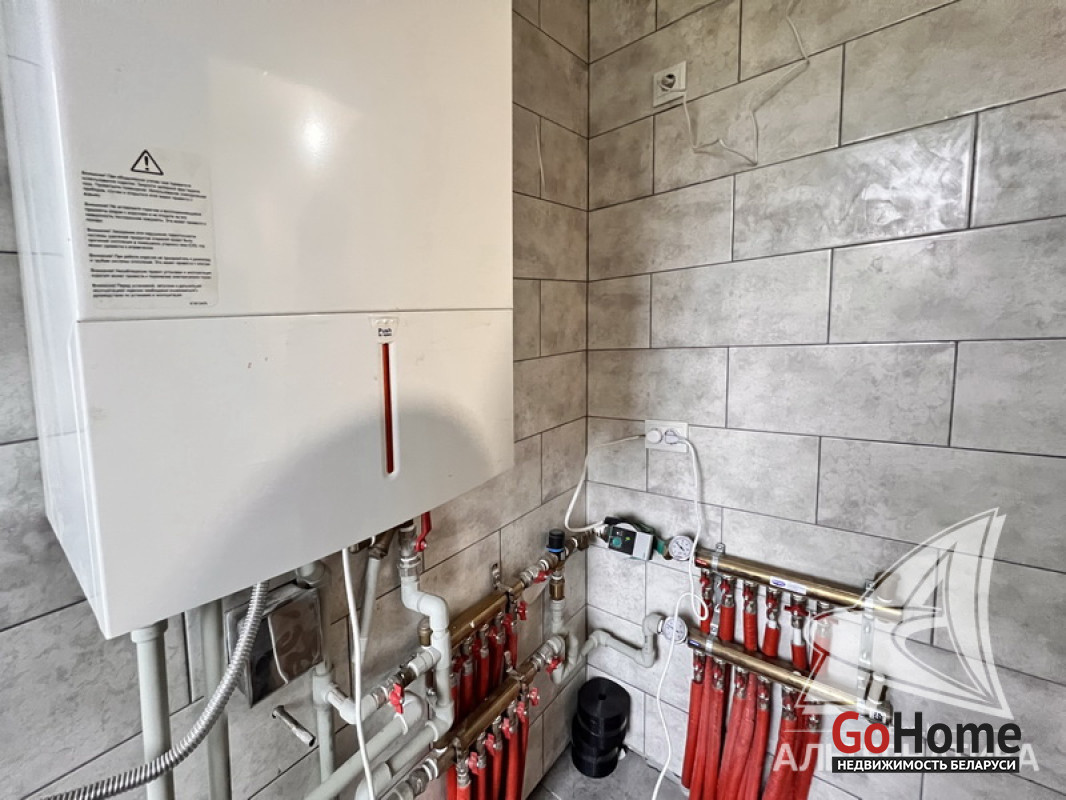 Коммуникации: отопление - газовый котел, газ - централизованный (в доме), водоснабжение - скважина, электричество - централизованное, канализация - автономная.