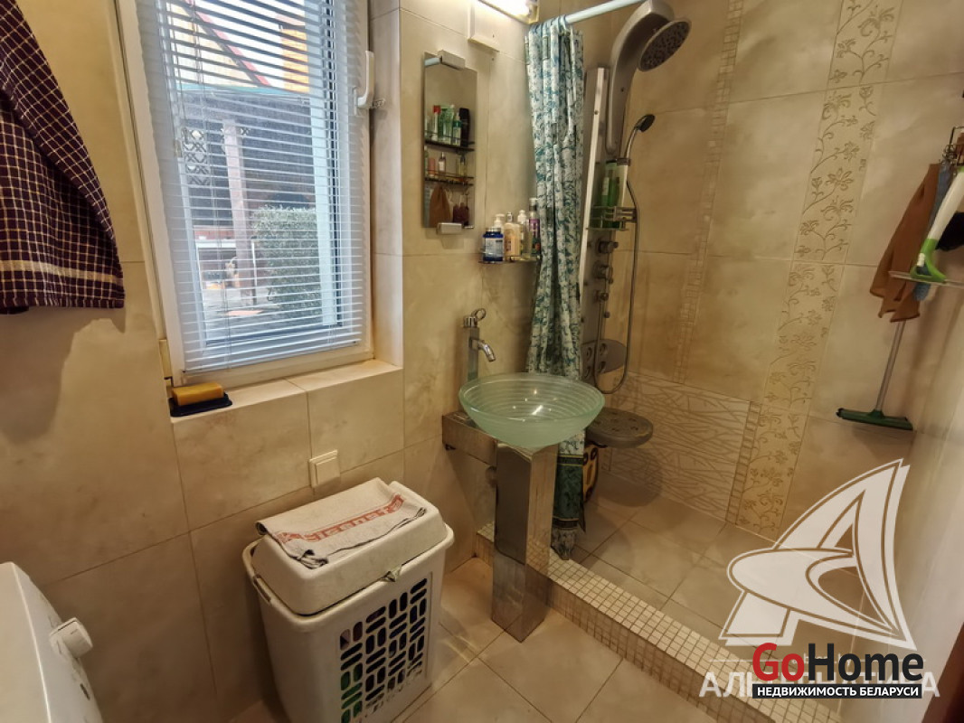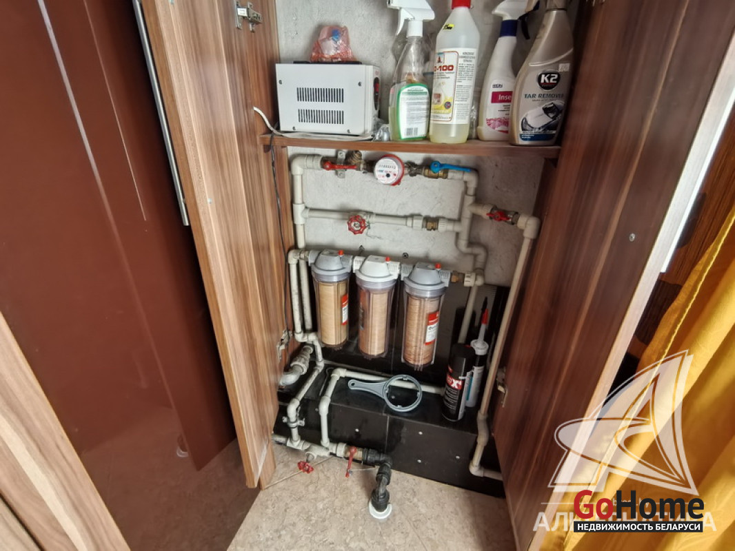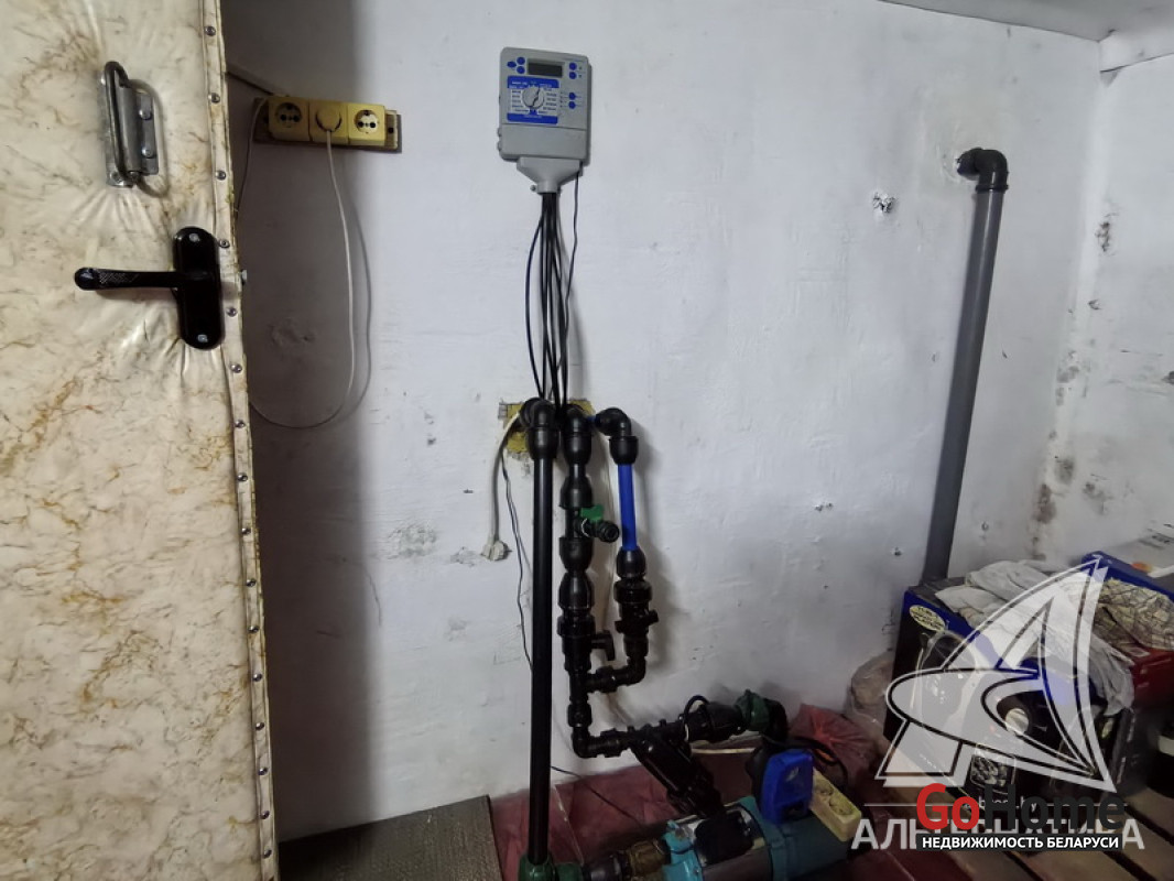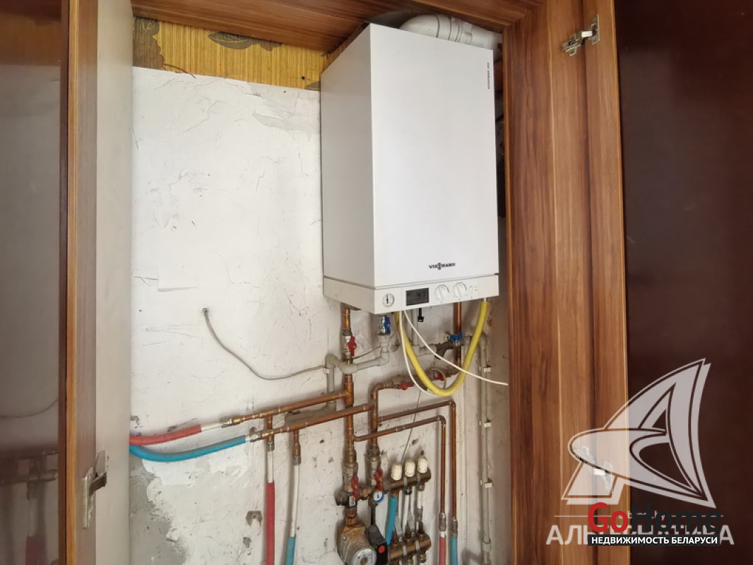 Коммуникации: отопление - газовый котел, газ - централизованный (в доме), водоснабжение - централизованный водопровод и скважина, электричество - централизованное, канализация - автономная.