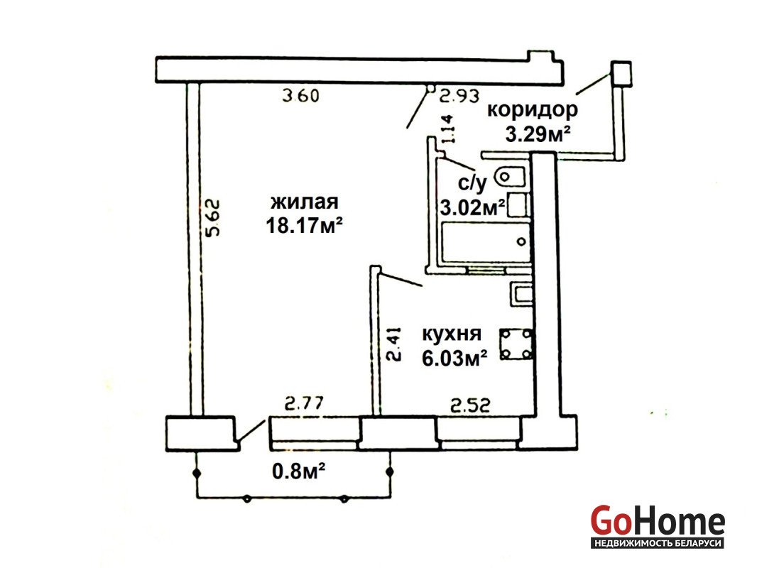 3 этаж 5 этажного кирпичного дома (1964 г./кап.ремонт 2023 г.). Площадь общая 30.5м2 (по СНБ 31.3м2), площадь жилая 18.2м2, площадь кухни 6м2, застекленный балкон, санузел совмещенный, высота потолков 2.52м. За квартирой закреплен подвал.