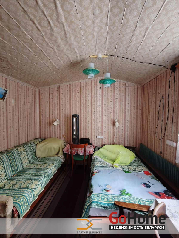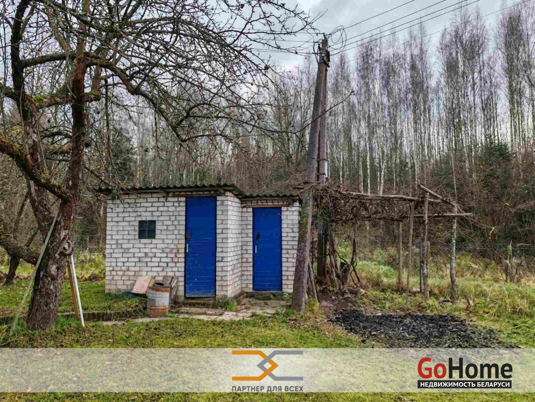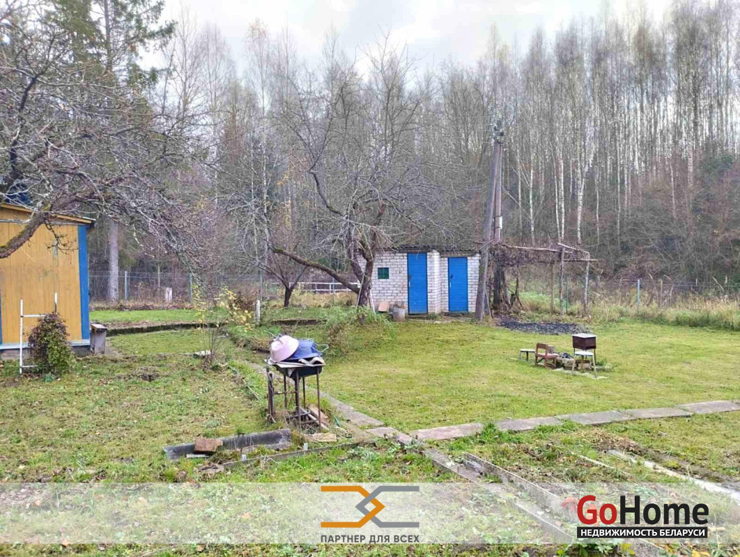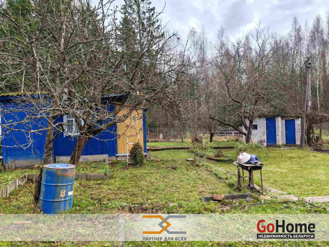 Продается садовый домик в живописном месте с/ т "Ромашка Соломореченская", 14 5 км от МКАД, Мядельское направление.Небольшой аккуратный дощатый домик с 2 комнатами и кухней.Обогрев электрообогревателями.К домику пристроен капитальный кирпичный, большой гараж.Очень удобное расположение ровного участка, он крайний и примыкает к зелёной зоне.Это создаёт уют, тишину и комфорт тем, кто там находится.На красивом участке имеются также кирпичный сарай, кирпичный туалет и деревянное помещение для душа.В помещение для душа подведена вода и установлен электротен для ее подогрева.На участке растут плодовые деревья и кусты.Рядом с участком лес и речка Чернявка ( правый приток р.Вячи), где водится форель. Вдоль речки имеются оборудованные родники.Недалеко (3км) водохранилище Селюты.Очень удобное транспортное сообщение с Минском (ходит маршрутный автобус). Остановка от дачи 500 метров.Там же возле остановки имеется магазин с постоянным режимом работы.Рядом (1 км) проходит МКАД-2.Покупайте аккуратную дачу в живописном месте, где тишина природы соседствует с развитой инфраструктурой.