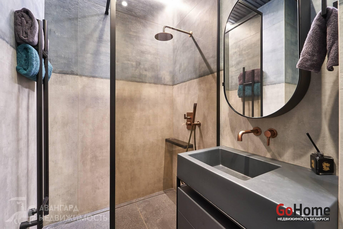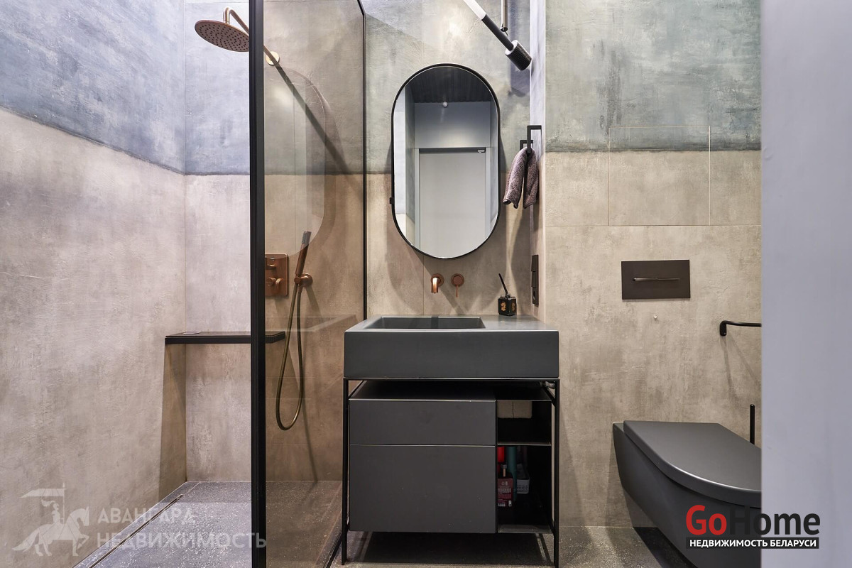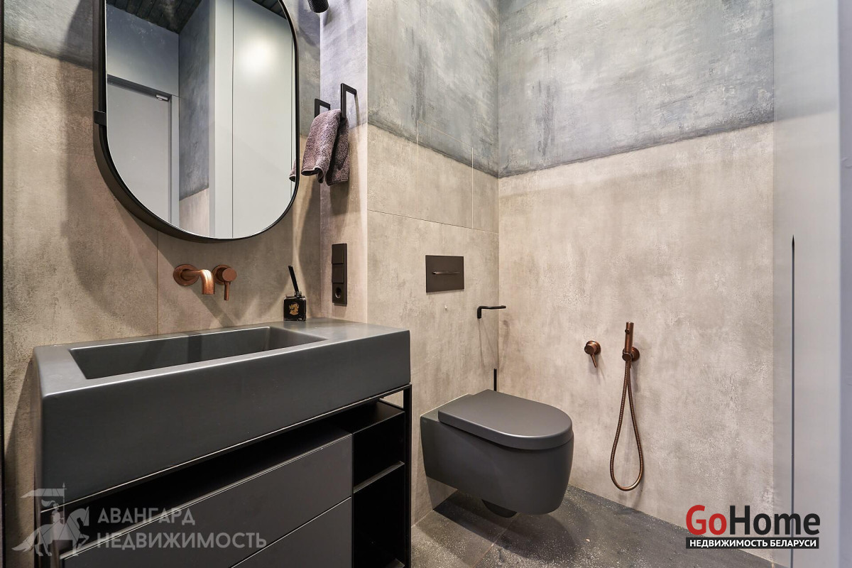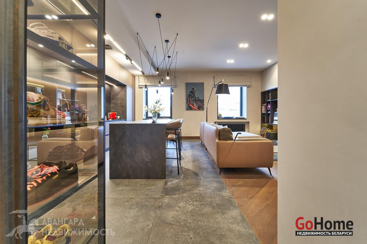Площадь квартиры по СНБ 59,8 м2, жилая площадь составляет 49,2 м.2. В квартире был произведен полный демонтаж старого ремонта (потолки, стены, пол и коммуникации), была произведена замена всего от дверей, окон, до сантехники и электрики, даже потолочные перекрытия. В квартире установлена система «умный дом», приточно-вытяжная система вентиляции и кондиционирование. На полу паркетное покрытие, ремонт выполнен из дорогих и современных материалов. Перепланировка была узаконена.