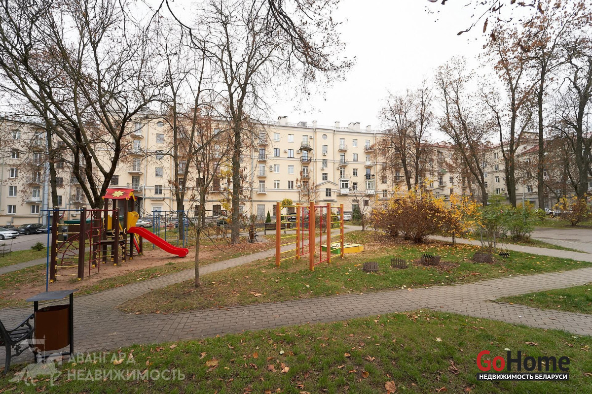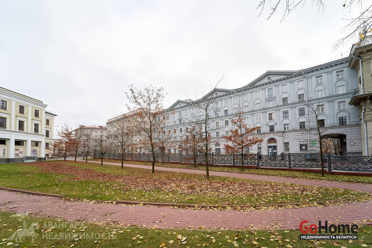Дом расположен в двух минутах ходьбы от станций метро Октябрьская и Купаловская, с видом на Александровский сквер и театр им. Я.Купалы. Дом является памятником архитектуры. Это отличный вариант как для жизни, так и для инвестиций. Квартира находится в кирпичном доме 1955г. постройки. Дом очень теплый, с отличной звукоизоляцией и высокими потолками (3,12м). Капитальный ремонт дома произведен в 2020 г с заменой всех коммуникаций.