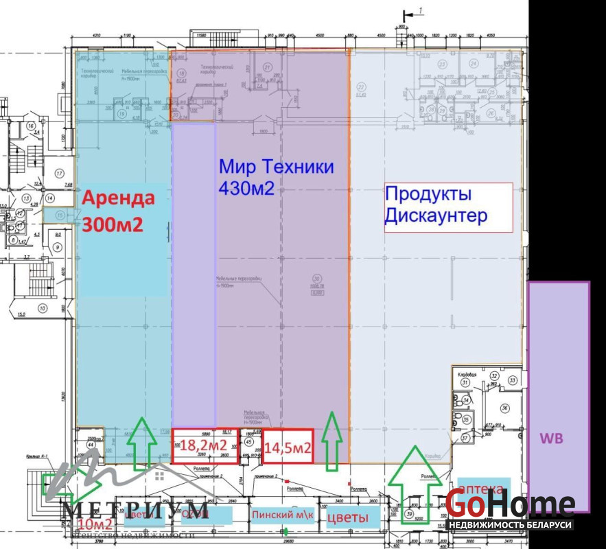 Предлагаемая площадь подойдет под различные сферы услуг и розничную торговлю.