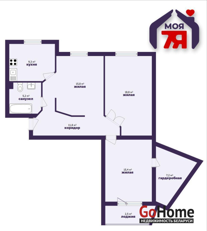 - Просторная кухня 9,3 кв.м., коридор 11,8 кв.м.