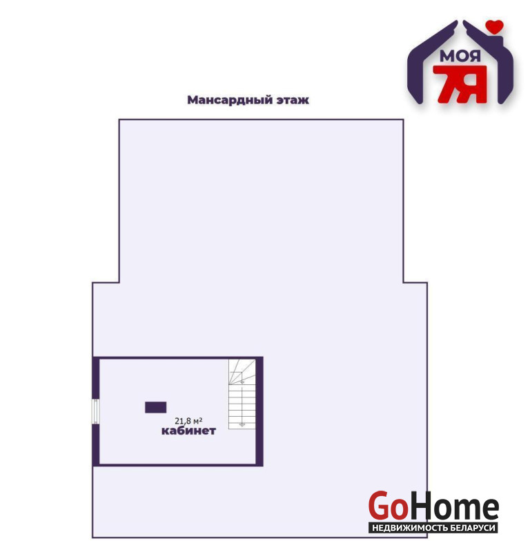- Имеется мансардный этаж, который можно оборудовать в просторный кабинет 21,8 кв.м. или в дополнительную жилую комнату