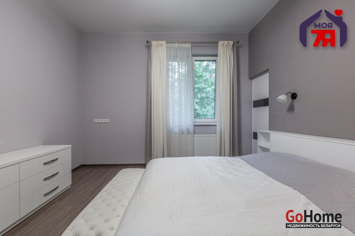 - Просторная входная группа с зимним садом; просторная кухня; гостиная с выходом на террасу; 2 спальные комнаты, одна из них - с личной гардеробной; 2 санузла: один объединен с душевой, второй санузел объединен с ванной.