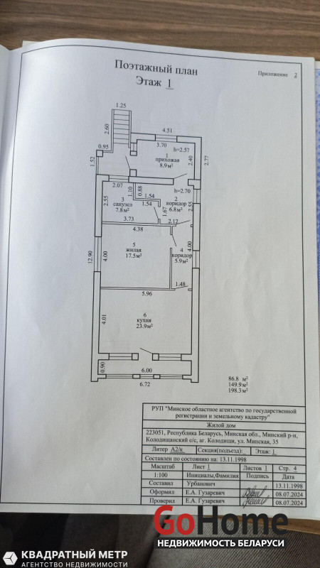 - 1этаж, Кухня-гостиная 23,9 м2, с остекленным балконом и видом на сосновый лес, кухня оборудована мебелью и техникой, гостевой зал – 17,5 м2, совмещенный санузел 7,8 м2