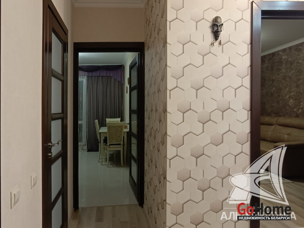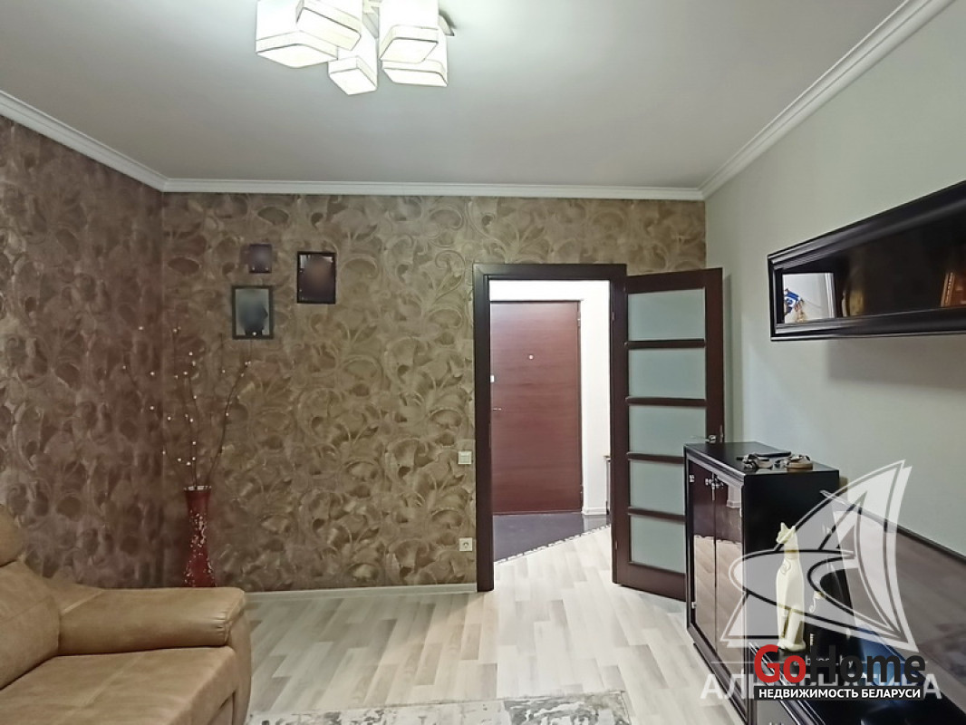1-комнатная квартира, г. Брест, ул. Гвардейская, 2013 г.п., 3 / 10 панель, 44,1 / 41,4 / 17,0 / 10,0, санузел раздельный, лоджия застеклена, стеклопакеты, межкомнатные двери - массив, входная дверь металлическая, потолки - снежка (2,63 м), в санузле современная плитка, установлен бойлер Ariston, домофон. Кухонный угловой гарнитур, варочная поверхность Bosch, духовой шкаф Bosch, вытяжка, оборудована гардеробная, набор (в ванной). Квартира с хорошим ремонтом. Окна выходят на зеленую зону, на восток. Тамбур на три квартиры. Один грузопассажирский лифт. Дом расположен в глубине двора. Хорошее месторасположение. Рядом магазин Евроопт, школа-сад, остановки общественного транспорта, поликлиника. Лот - 252036
