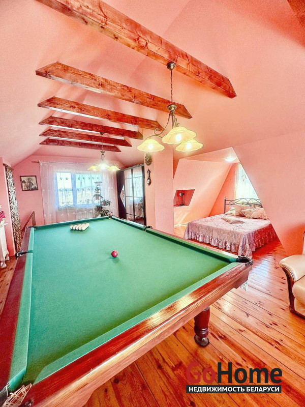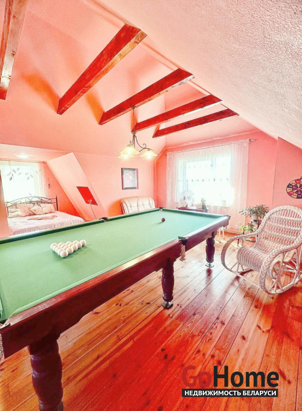 - Мансарда с бильярдным столом — идеальное место для отдыха и развлечений.