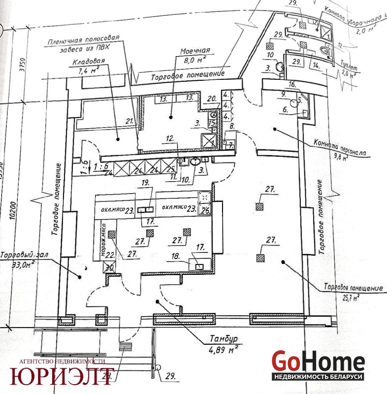 Помещение состоит из торгового зала - 33 кв. м., торговое помещение - 25.7 кв. м. (можно использовать для расширения основного зала), имеется кладовая, моечная, комната персонала, уборная.
