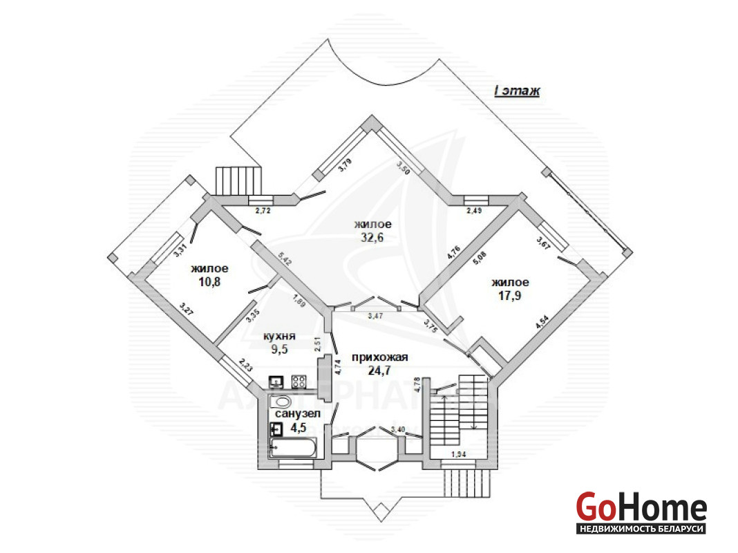 Жилой дом в Брестском р-не. 2004 г.п. 2 этажа, цокольный этаж. Общ.СНБ - 304,1 кв.м, общ.- 175,1 кв.м, жил.- 105,6 кв.м, кух.- 9,5 + 9,0 кв.м. 6 комнат, высота потолка - 2,98 м.