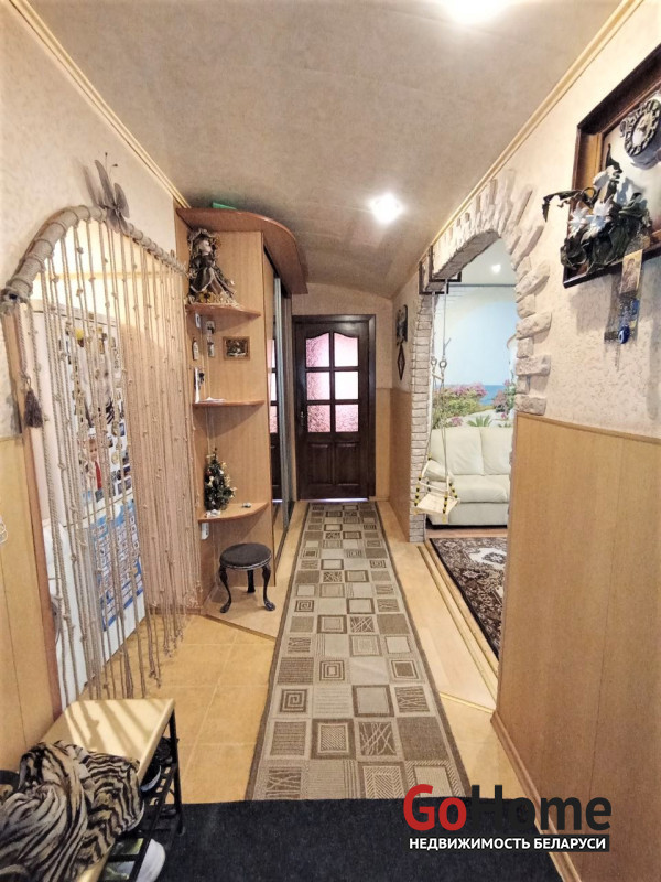 В квартире 3 комнаты, 1 из них проходная. В квартире выполнен косметический ремонт. Стены в комнатах и коридоре оформлены декоративной штукатуркой и окрашены моющейся краской. Везде установлены окна ПВХ, металлическая входная дверь, межкомнатные двери - массив. Натяжные потолки в комнатах. На полу в комнатах уложен ламинат, на кухне, в санузле и частично в коридоре - плитка. Установлен бойлер, счетчики, вся сантехника в аккуратном состоянии. Лоджия утеплена, обшита сайдингом, на полу уложена плитка и установлены рамы ПВХ. В коридоре вместительная ниша, в которой помещаются стиральная машина и холодильник. Тамбур на 3 квартиры, в нем достаточно места для велосипедов, колясок и т.п. Также за квартирой закреплен оборудованный подвал.