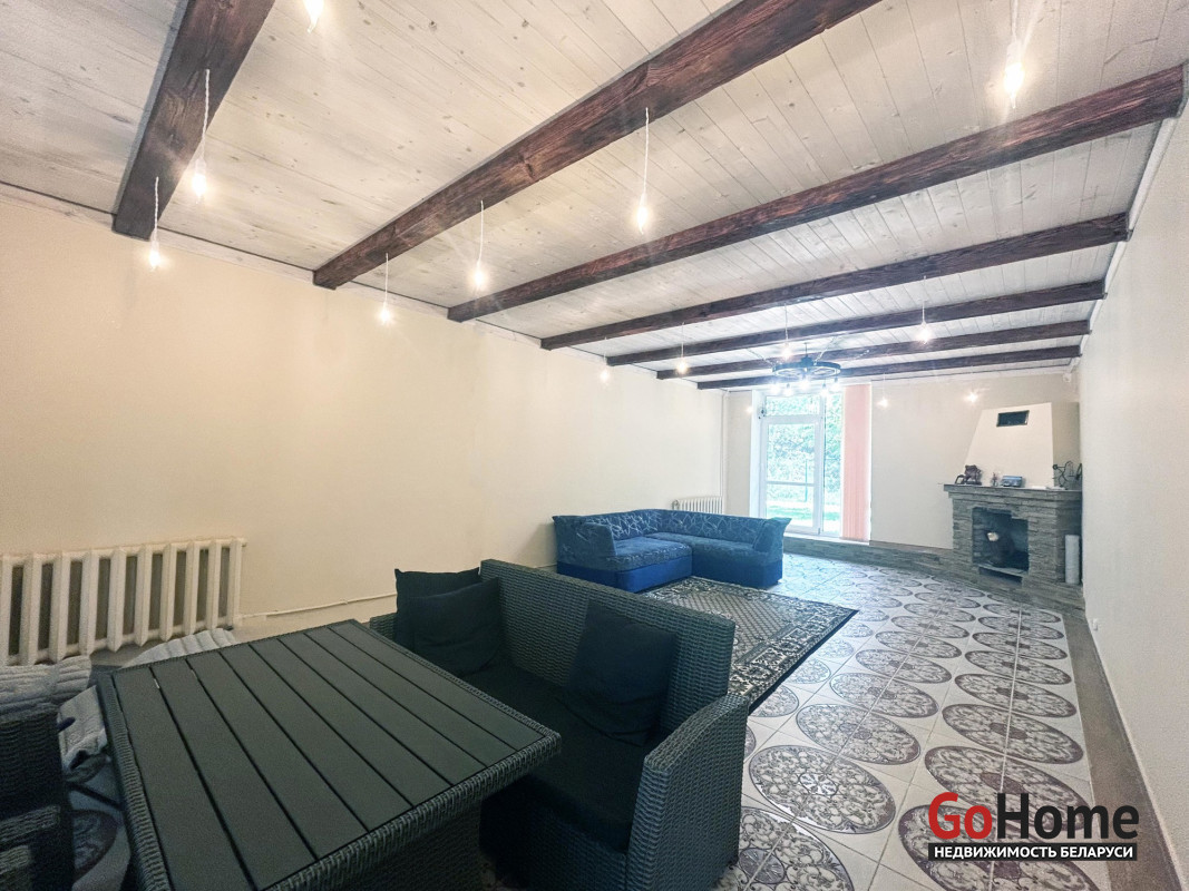 Дом одноэтажный, разделен на два изолированных помещения. В каждом помещении отдельный вход, спальня, санузел. Всего в доме две спальни, большая гостевая комната с камином, три санузла, просторная кухня, топочная. Выполнен современный ремонт. Стены оштукатурены и окрашены. Полы – плитка, ламинат. Санузлы облицованы плиткой.